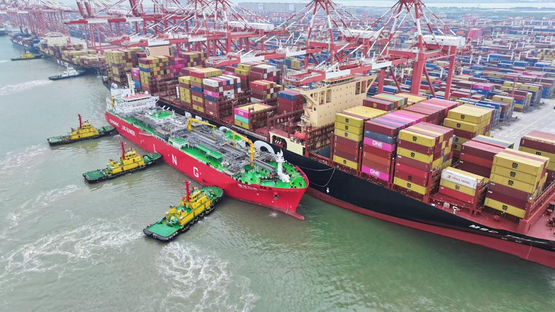 2025年11月1日,廣州港南沙港區(qū)完成一項關鍵突破:全球最大的LNG運輸加注船“海洋石油301”輪,在泊位同步為15萬噸級集裝箱船“地中海泰安司”輪加注約3000立方米保稅液化天然氣(LNG),并高效完成集裝箱裝卸作業(yè)。此舉標志著廣州港成為華南首個具備“錨地+碼頭”全模式LNG加注能力的港口,為貨主及航運企業(yè)提供更低碳、更經濟、更高效的燃料補給選擇